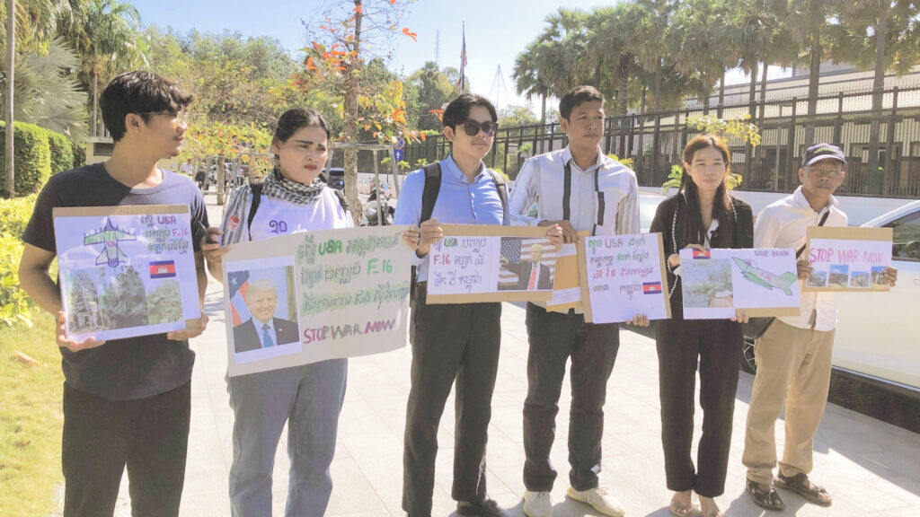 ការដាក់ញត្តិនេះធ្វើឡើងនៅមុខស្ថានទូតអាមេរិកប្រចាំនៅកម្ពុជា ដោយពួកគេបានកាន់បដាមានរូបប្រធានាធិបតីអាមេរិក និងគូររូបយន្តហោះចម្បាំង F-16 អមនឹងសារស្នើប្រទេសមហាអំណាចនេះ ឱ្យចាត់វិធានការជាក់ស្ដែងលើប្រទេសថៃដែលកំពុងឈ្លានពានកម្ពុជា។