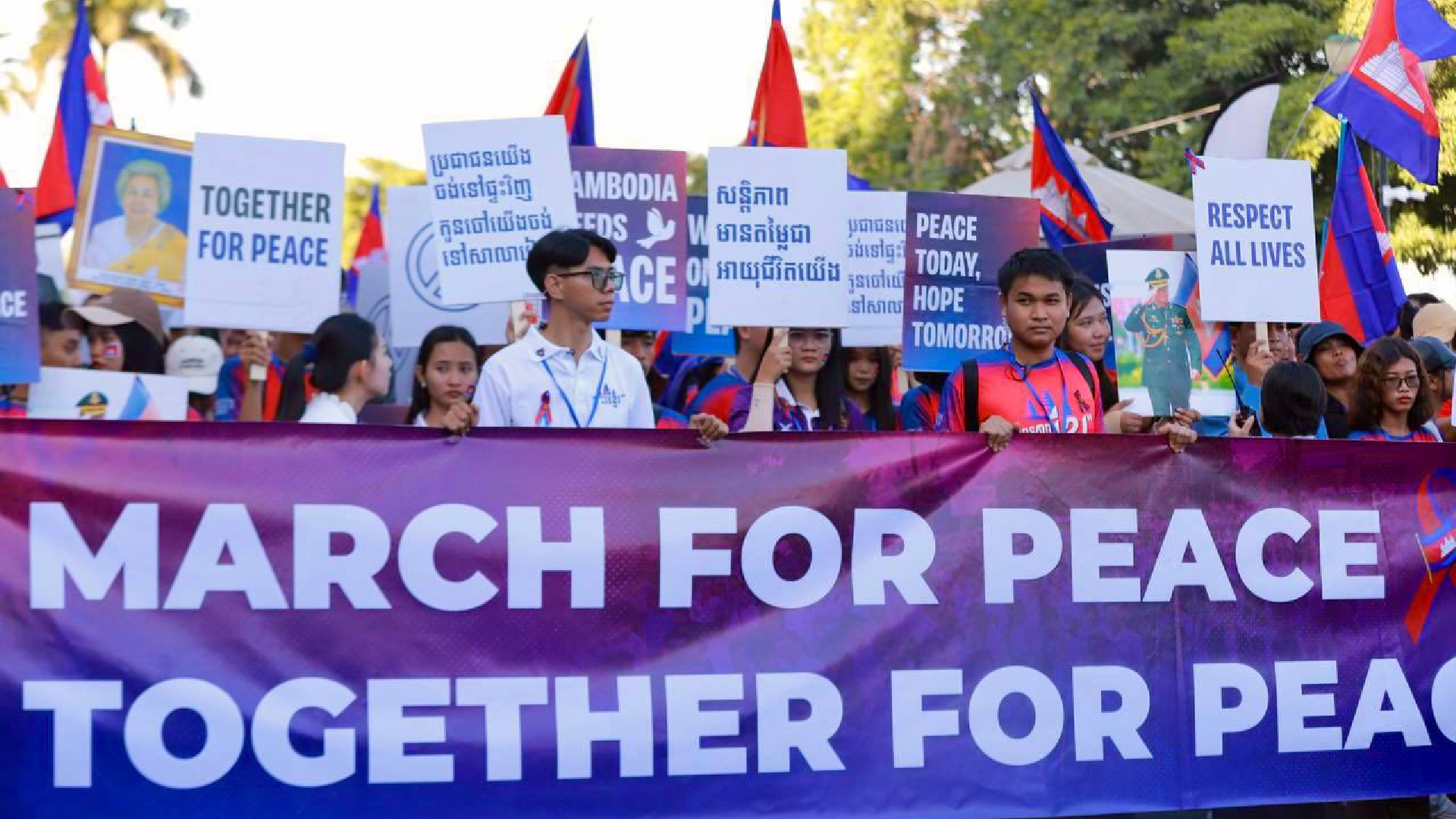 ពលរដ្ឋ​ខ្មែរ​ចូលរួម​ដំណើរ​ព្យុហយាត្រា បង្ហាញ​ស្មារតី​គាំទ្រ​សន្តិភាព និង​បទ​ឈប់​បាញ់ កាល​រសៀល​ថ្ងៃទី​១៨ ធ្នូ ២០២៥។ រូប៖ សហភាព​សហព័ន្ធ​យុវជន​កម្ពុជា