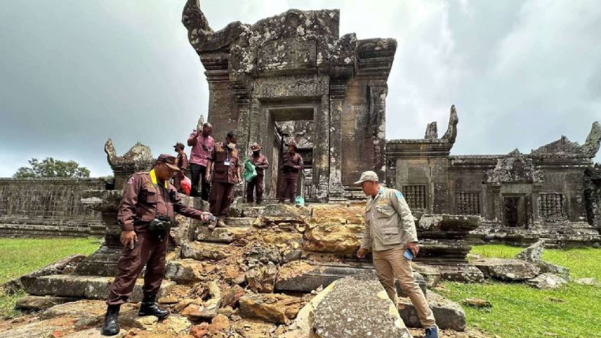 ទិដ្ឋភាព​ប្រាសាទព្រះវិហារ​បន្ទាប់ពី​យោធា​ថៃ​ឈ្លានពានខ្មែរ​នៅតាមព្រំដែន កាលពី​ខែ​កក្កដា ២០២៥។ រូប៖ ក្រសួង​វប្បធម៌ និង​វិចិត្រសិល្បះ