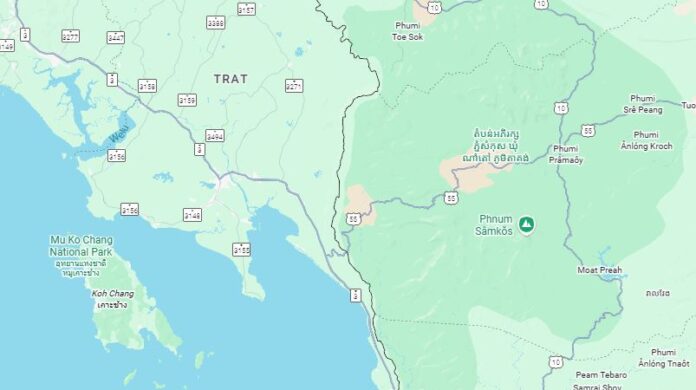 ផែនទីបង្ហាញ​ពី​ខេត្ត​ត្រាត របស់​ថៃ និង​ខេត្ត​ពោធិសាត់​ បាត់ដំបង​របស់​កម្ពុជា។ Screenshot