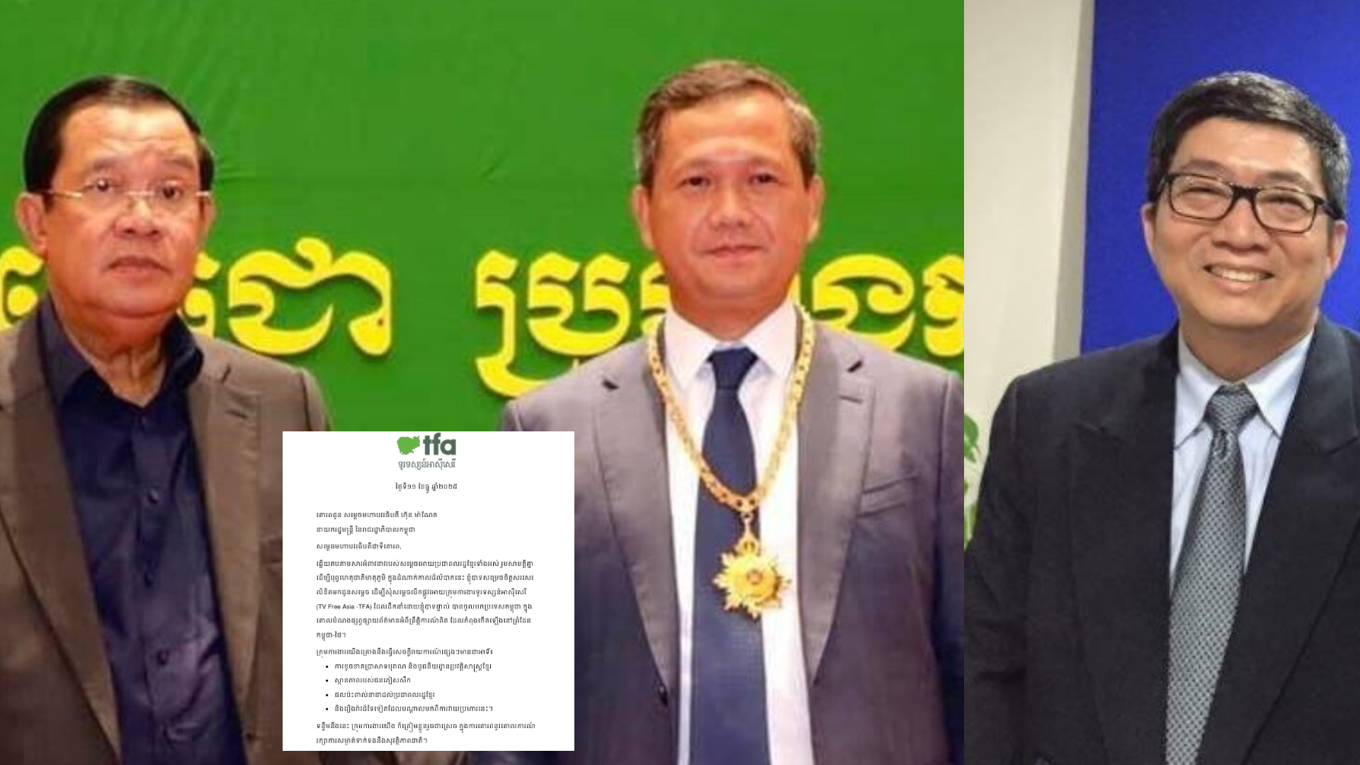 នាយកប្រតិបត្តិនៃទូរទស្សន៍អាស៊ីសេរី លោក ជុន ច័ន្ទបុត្រ បានសរសេរលិខិតពីរច្បាប់ដាក់ជូនលោក ហ៊ុន សែន និងលោក ហ៊ុន ម៉ាណែត ដើម្បីស្នើសុំឲ្យលោកទាំងពីរ បើកផ្លូវឲ្យក្រុមការងារទូរទស្សន៍អាស៊ីសេរី បានចូលទៅប្រទេសកម្ពុជា ក្នុងគោលបំណងផ្សព្វផ្សាយព័ត៌មានអំពីព្រឹត្តិការណ៍ពិតដែលកំពុងកើតឡើងនៅព្រំដែនកម្ពុជា-ថៃ។