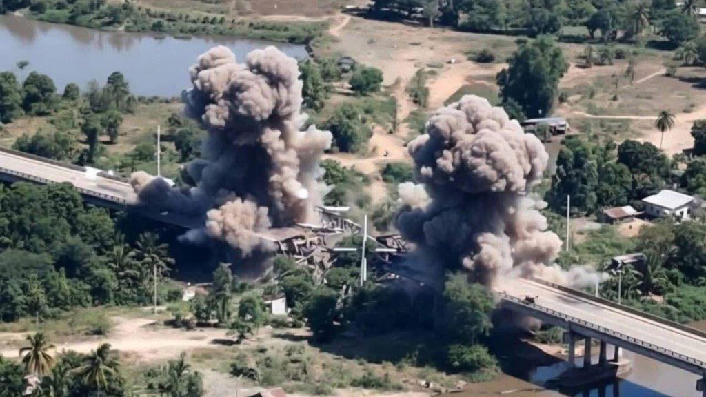 យោធាថៃវាយប្រហារចូលទឹកដីកម្ពុជាកាន់តែខ្លាំង និងឃោរឃៅដើម្បីបំផ្លាញហេដ្ឋារចនាសម្ព័ន្ធកម្ពុជាគ្រប់ បែបយ៉ាង ខណៈមេដឹកនាំប្រទេសថៃប្រកាសមិនទទួលយកបទឈប់បាញ់ និងបន្តទម្លាក់គ្រាប់បែកបំផ្លាញប្រាសាទបុរណ អគារកាស៊ីណូ ស្ពានមេទឹក ផ្ទះសម្បែង វត្តអារាម មន្ទីរពេទ្យ និងសាលារៀន ដោយឃោរឃៅ និងអមនុស្សធម៌។