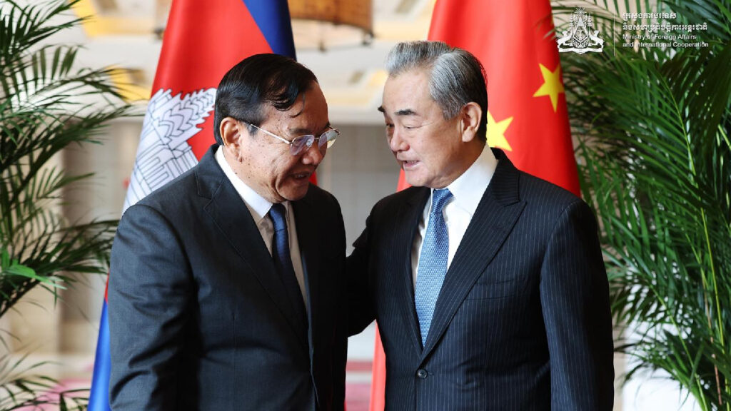 រដ្ឋមន្ត្រី​ការបរទេស​កម្ពុជា លោក ប្រាក់ សុខុន (ឆ្វេង) ជួប​រដ្ឋមន្ត្រី​ការបរទេស​ចិន លោក វ៉ាង យី (Wang Yi) នៅ​ខេត្ត​យូណាន (Yunan) ប្រទេស​ចិន កាលពីថ្ងៃទី២៨ ខែ​ធ្នូ ឆ្នាំ​២០២៥។ រូប៖ ក្រសួង​ការបរទេសកម្ពុជា